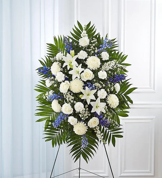 About Blue & White Funeral Standing Spray